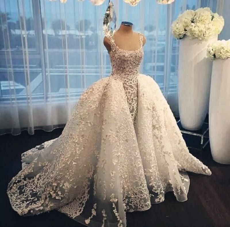 Luxury Full Lace Ball Gown Wedding Dresses With Detachable Skirt