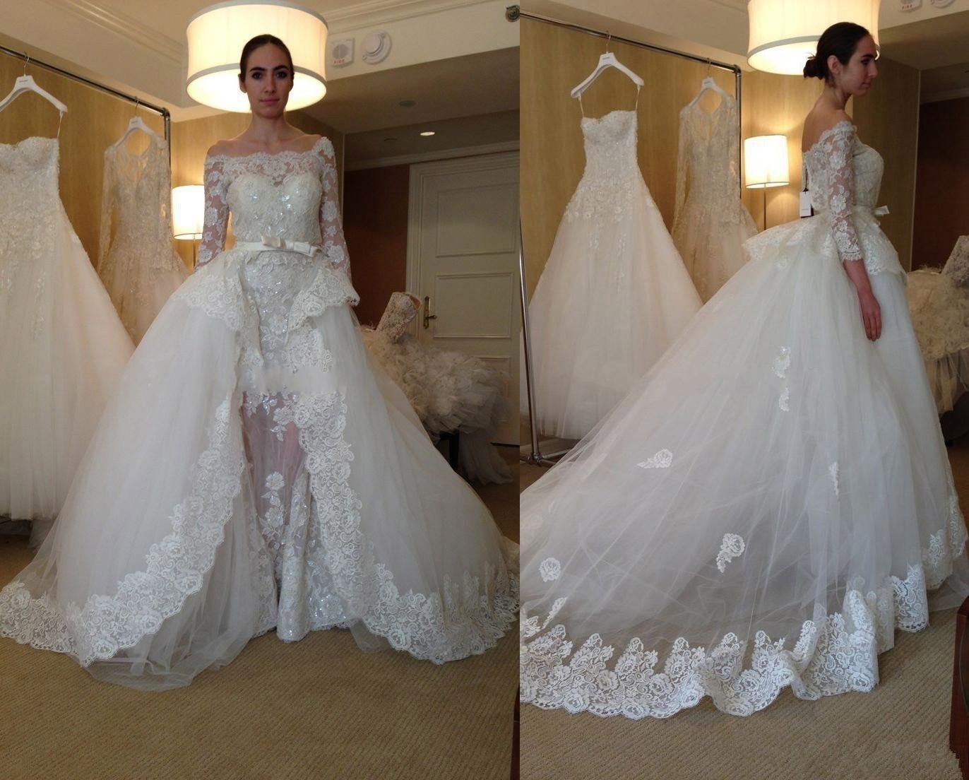 Beautiful 2016 Zuhair Murad Lace Wedding Dresses With Overskirt V