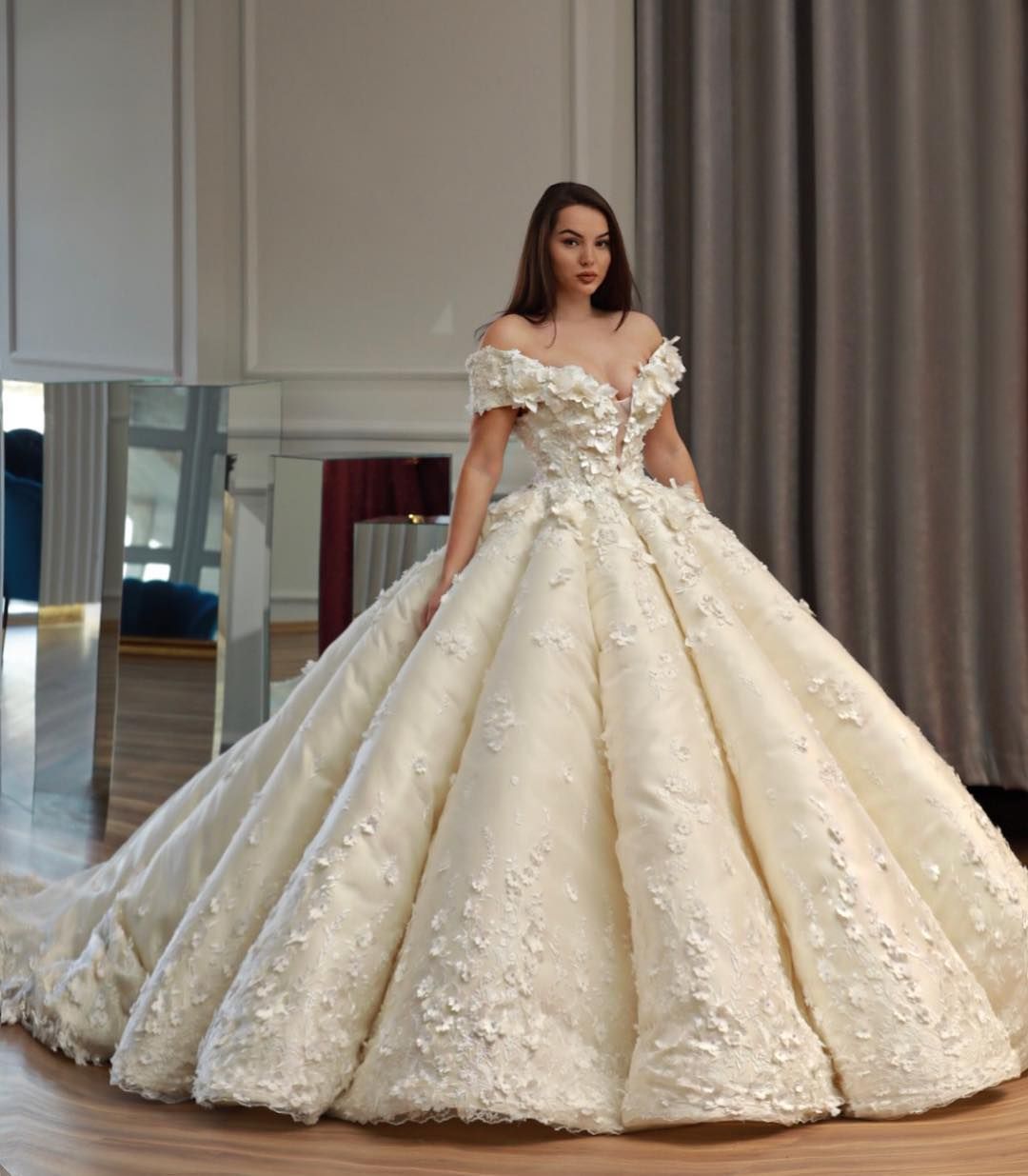 Saudi Dubai Princess Wedding Dress Off Shoulder Beads 3d Floral