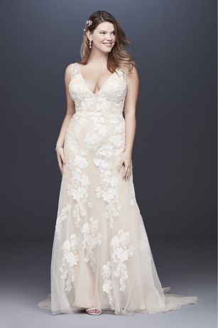 Deep V Plus Size Wedding Gown With Floral Applique David S Bridal