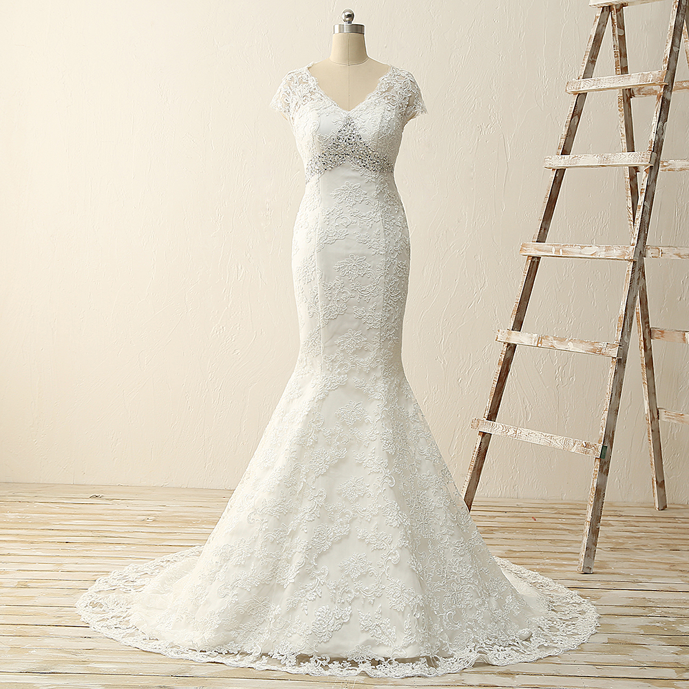 W1021 Lace Mermaid Wedding Dress Empire Waist Lace Mermaid Bridal