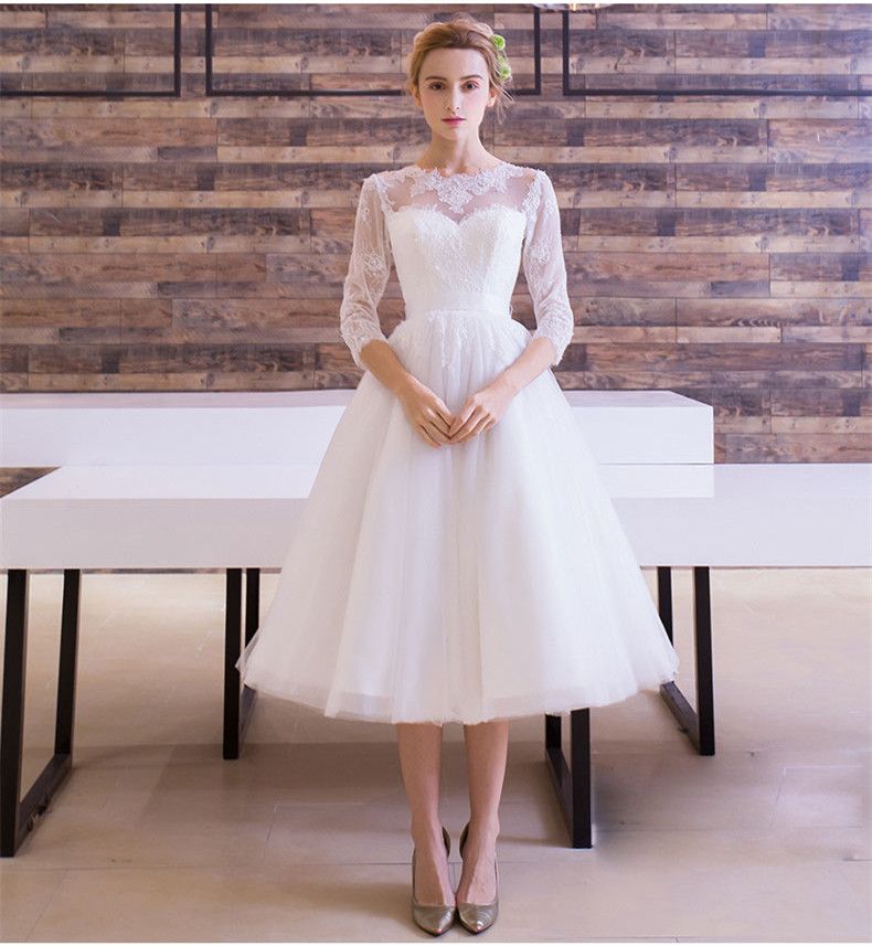 Elegant Knee Length Lace V Neck Wedding Dress Simple Short Garden
