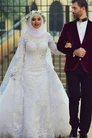 Discount Islamic Style Muslim Long Sleeve Wedding Dresses Turkish