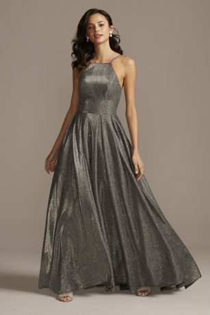 High Neck Metallic Ball Gown With High Low Hem David S Bridal