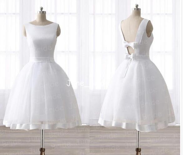A Line White Wedding Dresses For Bride Knee Length Party Formal