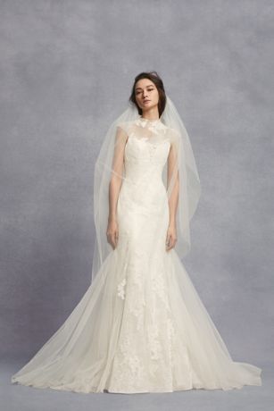 Appliqued Chantilly Lace Trumpet Wedding Dress David S Bridal