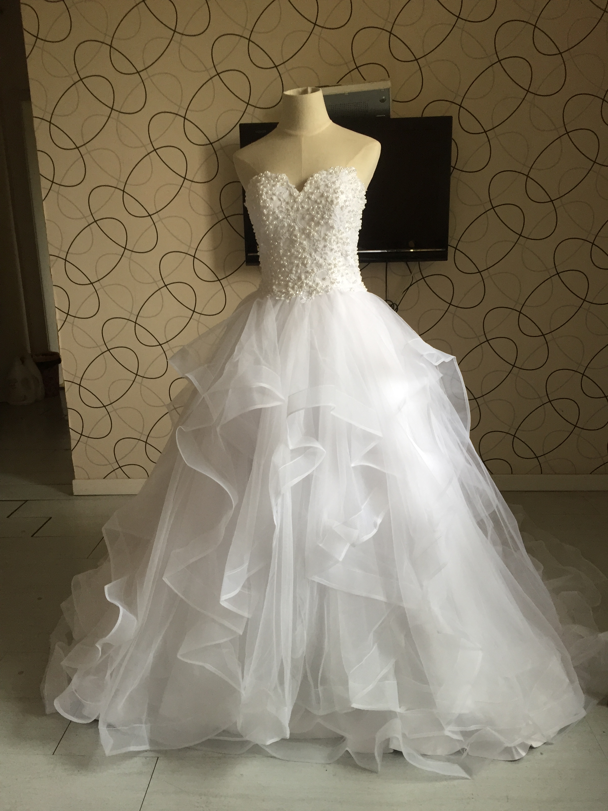 Custom Made Beaded Pearls Sweetheart Ball Gown Wedding Dresses
