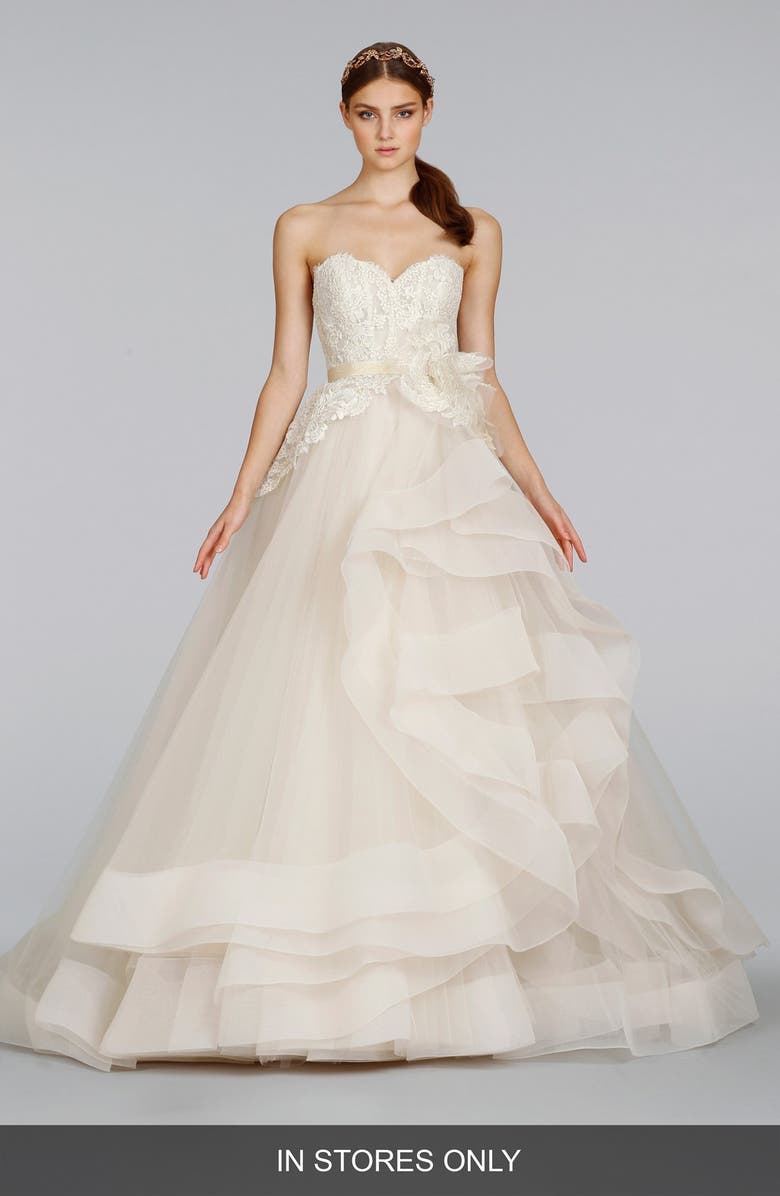 Lazaro Strapless Lace Layered Tulle Ballgown Nordstrom