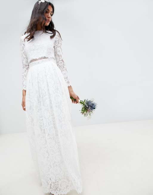 Asos Edition Lace Long Sleeve Crop Top Maxi Wedding Dress Asos