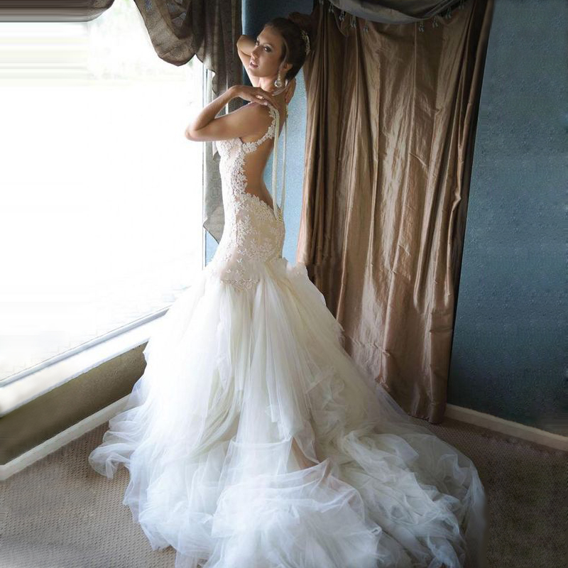 Buy Discount Gorgeous Tulle V Neck Neckline Cut Out Back Mermaid