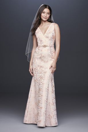 V Neck Jacquard Mermaid Gown With Beaded Waist David S Bridal