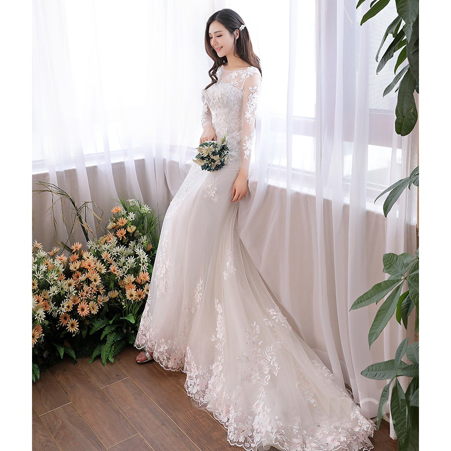 Pre Order Muslimah Cream Lace Long Sleeve Fishtail Wedding Bridal