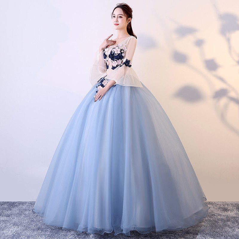 Pre Order Muslimah Long Sleeve Blue Puffy Princess Ball Wedding