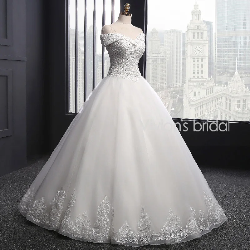 2020 Lace Appliqued Ball Gown Wedding Dress Off Shoulder Luxury
