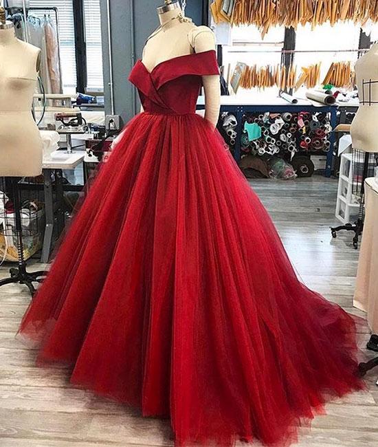 Red Tulle Ball Gown Prom Dress Quinceanera Dresses Off The