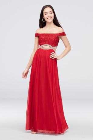 Off The Shoulder Lace And Mesh Bridesmaid Dress David S Bridal