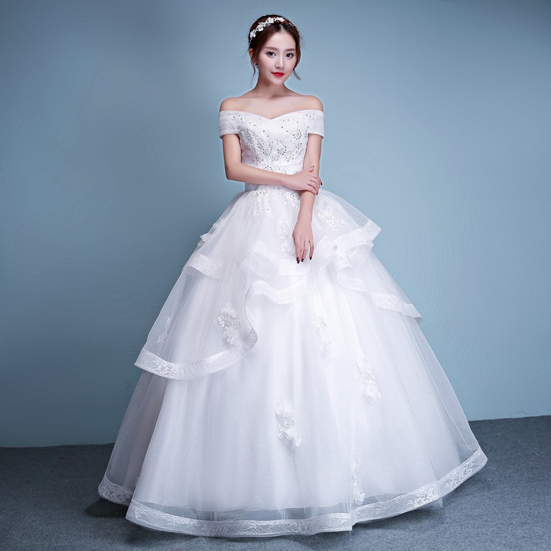 Off The Shoulder Wedding Dress For Women 2019 New Style Korean