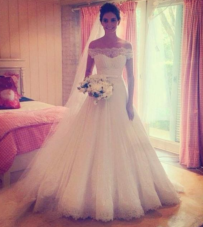 Princess Cut Wedding Dress In Tulle With Off The Shoulder Sleeves