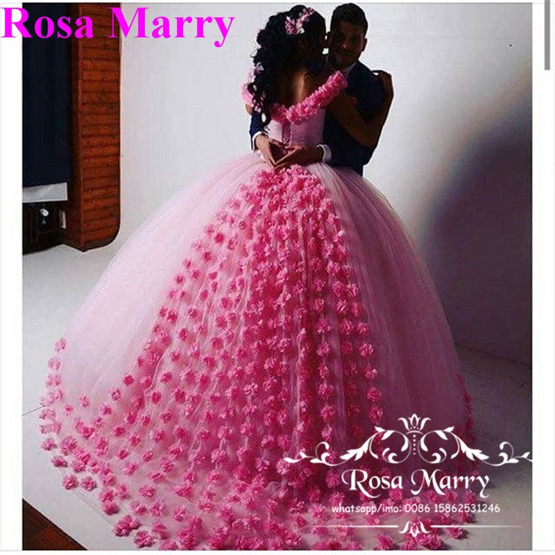 Princess Pink Ball Gown Arabic Wedding Dresses 3d Flowers 2020 Off