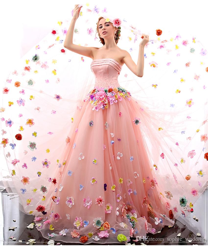 Luxury Wedding Dress Pink Flowers Ball Gown Princess Bride Agora