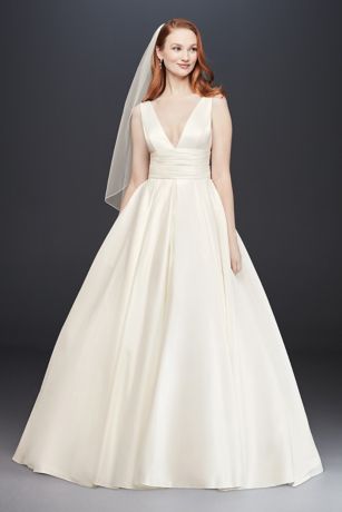 Satin Ball Gown Wedding Dress With Plunging V Neck David S Bridal