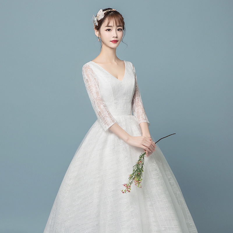 Wedding Dress Lace V Neck Korean Style 3 4 Long Sleeve Simple