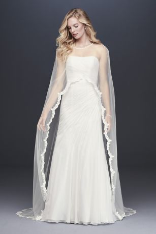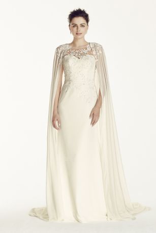 Oleg Cassini Crepe Wedding Dress With Chiffon Cape David S Bridal