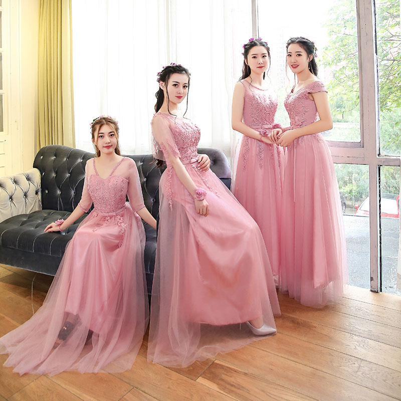 F202 Bridesmaid Dresses Long Design Pink Color Mauve Slit Neckline
