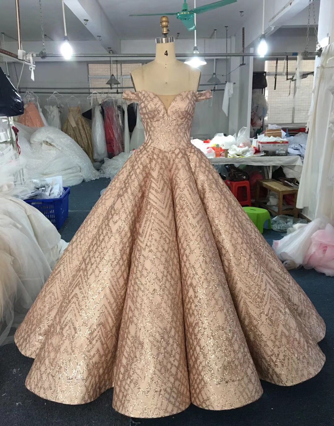 Rose Gold Wedding Dresses Sequin Ball Gown Off Shoulder Alinanova