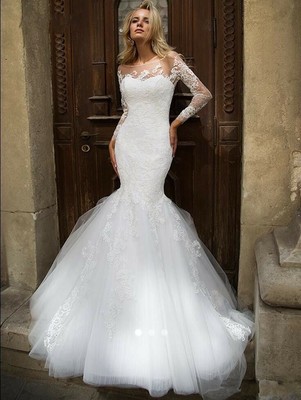 New White Ivory Tulle Lace Wedding Dress Long Sleeve Mermaid