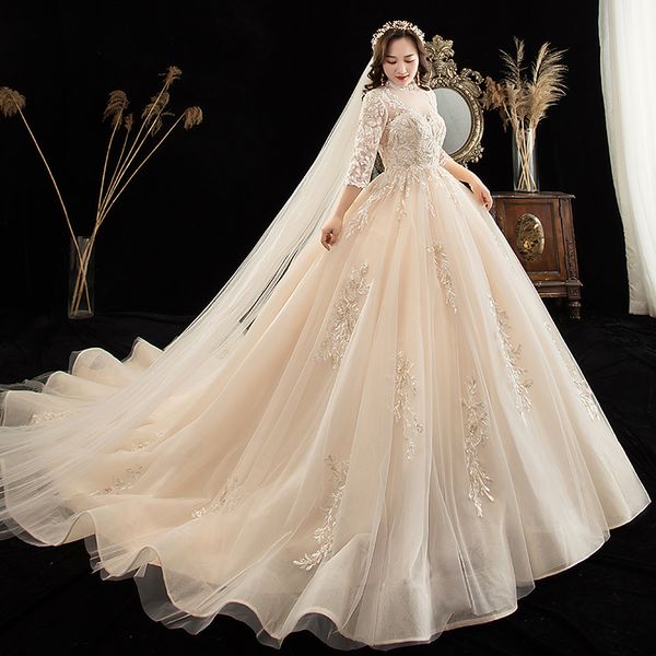 2019 Arabic Vintage Lace Applique Ball Gown Wedding Dresses Dubai