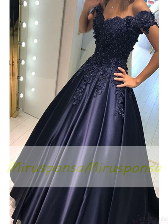 Navy Blue Wedding Dresses Off Shoulder Ball Gowns Lace Long