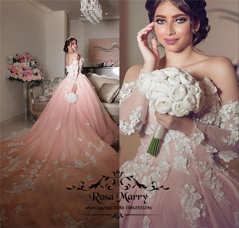 Vestidos De Noiva Bride Dress Pink Ball Gown Princess Lace Muslim