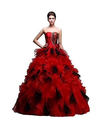 Red And Black Ball Gown Wedding Dress In Colors Beaded Crystals