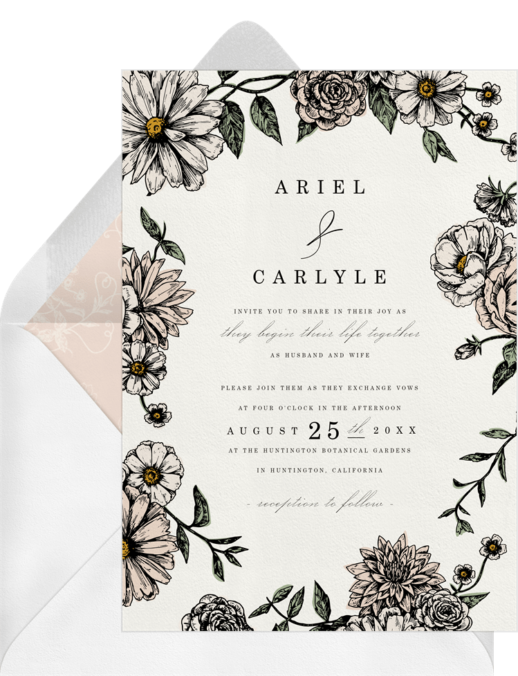 Wedding Invitation Floral Card Custom Designed Illustrations