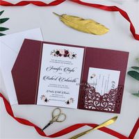 Incredible Pocket Wedding Invitation Burgundy And Gold Laser Cut