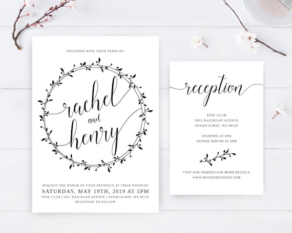 Printed Cheap Wedding Invitation Sets Simple Calligraphy Etsy